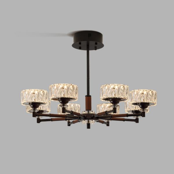 9 Lights Translucent Modern Light Chandelier with K9 Crystal Glass Bi-pin Shade in Geometric Shape, Black, 110V-120V