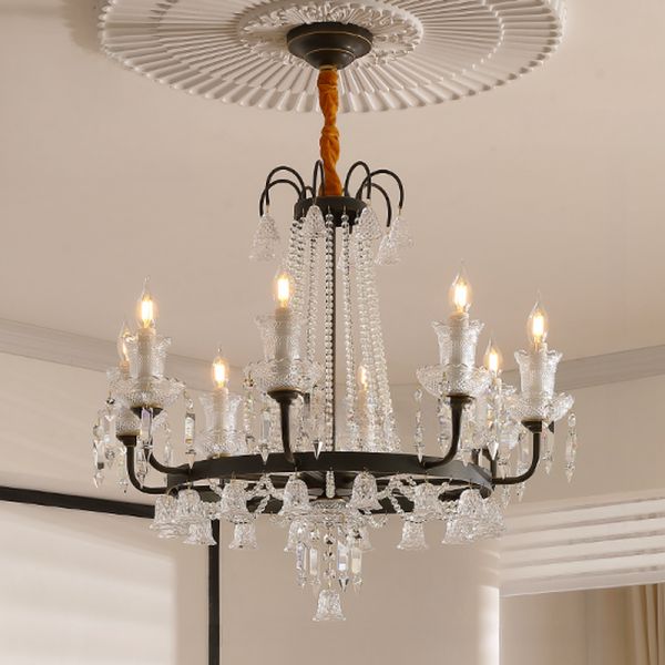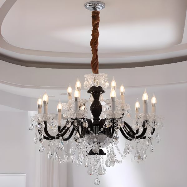 15 Lights Transparent Chandelier with Adjustable Hanging Rod, 110V-120V