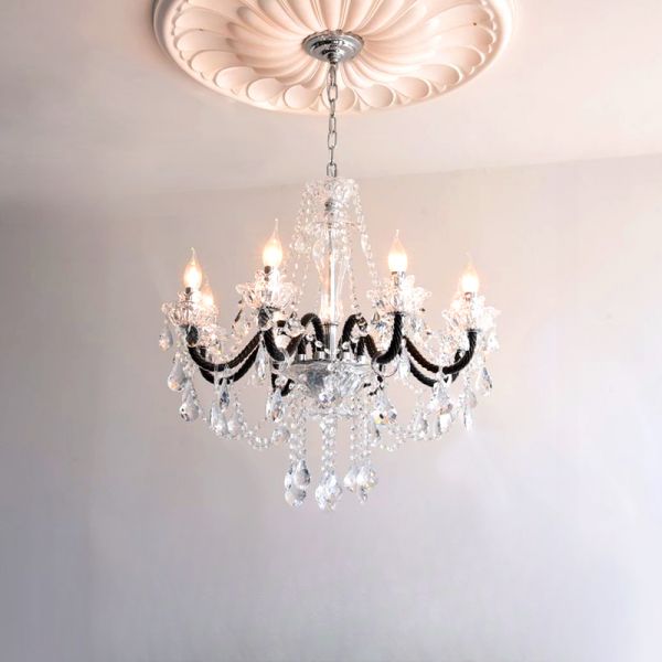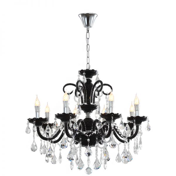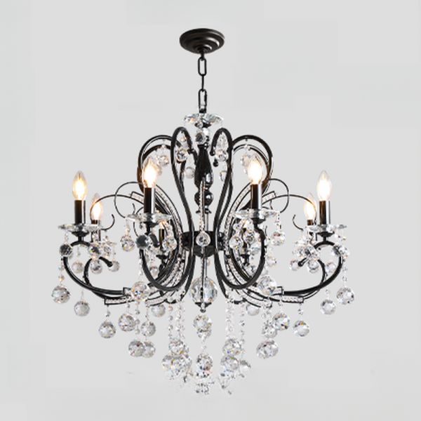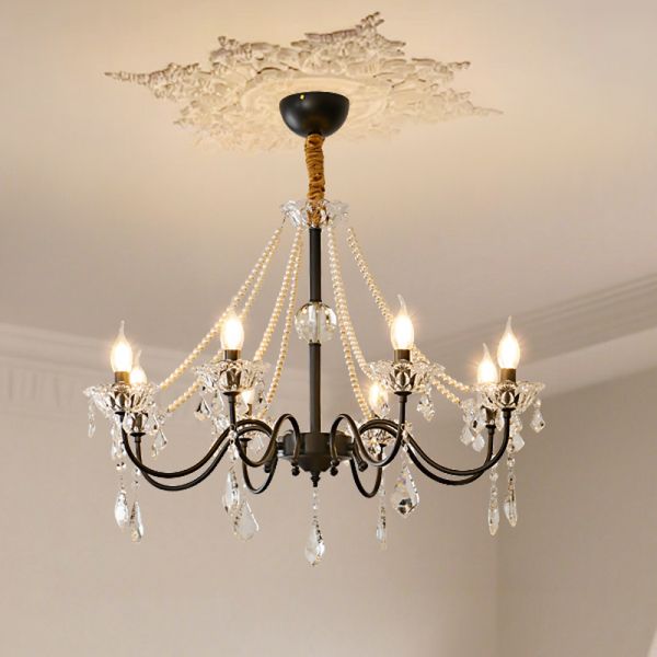 Midnight Black Crystal Candelabra with Metal and Adjustable Chain Hanging Light, 110V-120V, 8