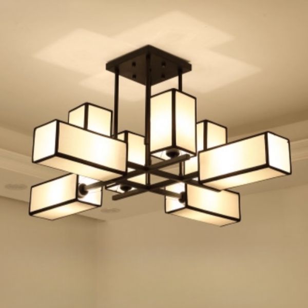 Chandelier Light with 8 Lights, Directed Downward Chalk Glass Shade, Rectilinear Fixture for Residential Use, Direct Wired Electric, 110V-120V