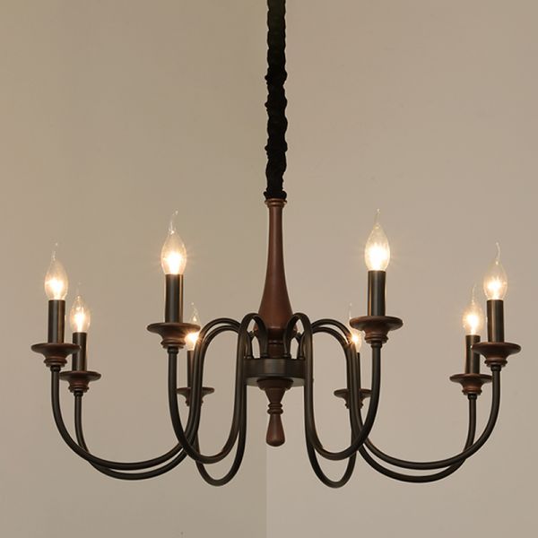 Ink Candelabra Iron Chandelier with Adjustable Chain, 110V-120V, 8