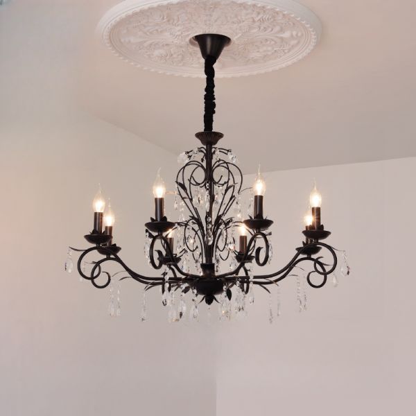 Ink Iron Candelabra Light Chandelier with Adjustable Chain, 110V-120V, 8