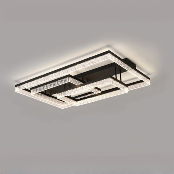 Clear Glass Flush Mount Modern Squared Ceiling Light Fixture for Living Room - Black 110V-120V 43" Third Gear (Warm/White/Neutral Light of Dimming)