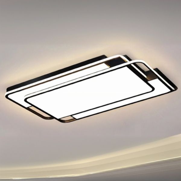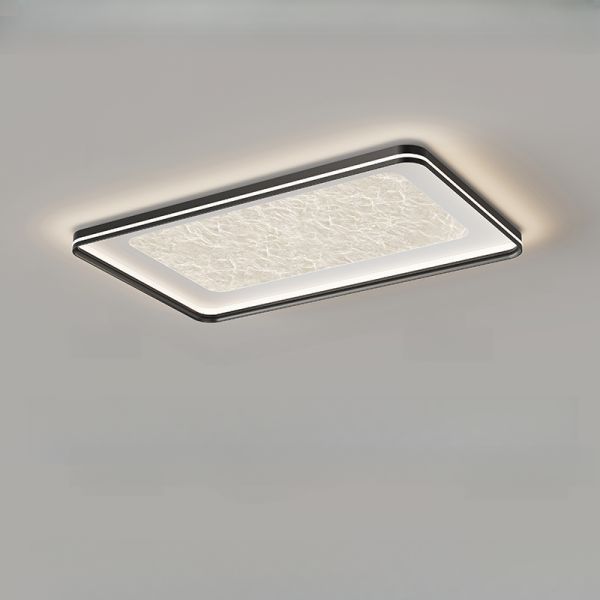 Midnight Black Ceiling Lamp with 1 Light, Hardwired Flat Mounted Metal Fixture, PMMA Shade, LED Light, 110V-120V, 25.5", Third Gear (Warm/White/Neutral Light of Dimming), Rectangle