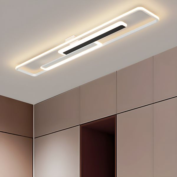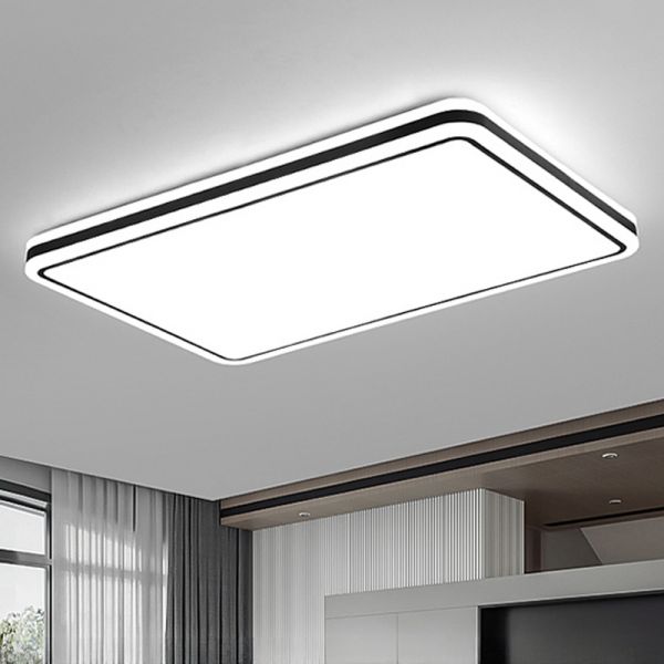 1-Light Metal Flush Mount Ceiling Led Lights Modern Style Geometric Flush Ceiling Lamp Fixture - 110V-120V Black White Light Rectangle