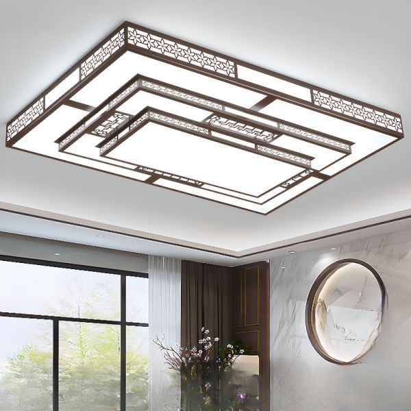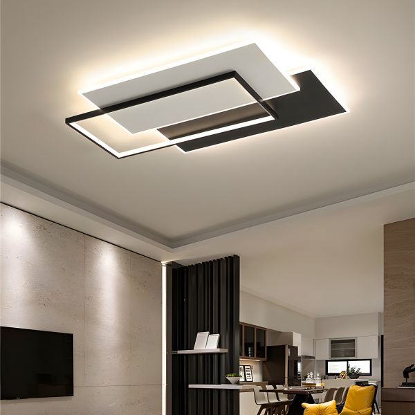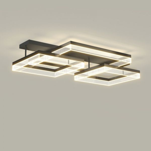 Modern Geometry Shape Ceiling Lamp Iron 3 Lights Flush Mount for Bedroom - Rectangle 110V-120V Third Gear (Warm/White/Neutral Light of Dimming)