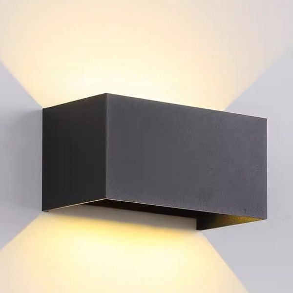 Minimalist Aluminum Wall Sconce, Architectural Up/Down Light Fixture with Weather-Resistant Finish - 110V-120V Black Rectangle