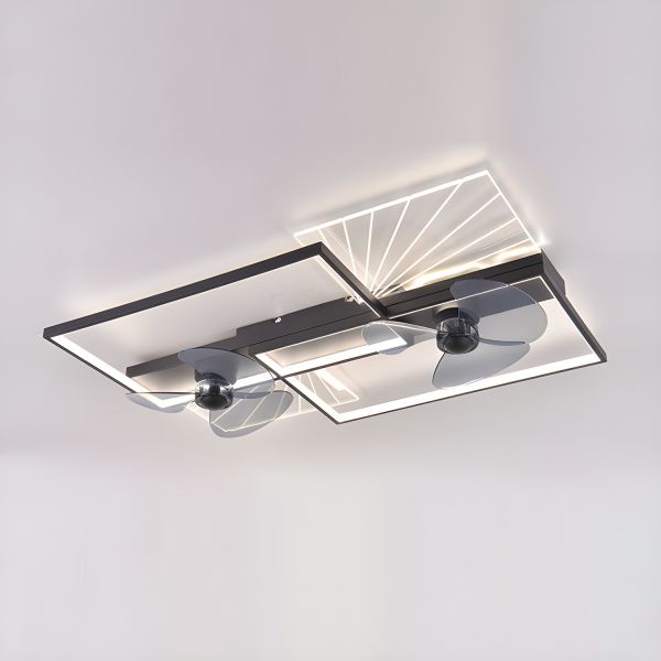 Geometric Flush Mount Bladeless Ceiling Fan with Integrated LED Light and Quiet Copper Motor - 110V-120V Black and White Rectangle