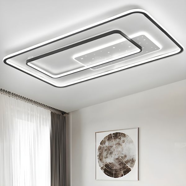 Contemporary Geometric LED Flush Mount Light, Layered Rectangular Fixture with Starry Diffuser - 110V-120V 35.5"