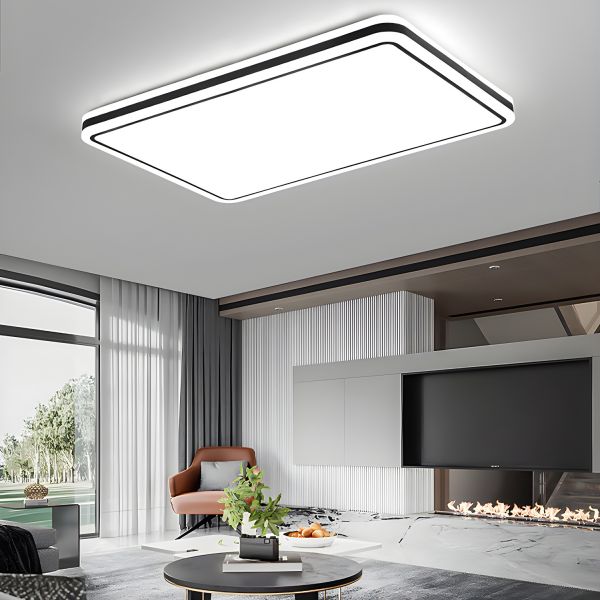 Sleek Geometric LED Flush Mount Light, Low-Profile Matte Black Fixture with Eye-Care Diffuser - 110V-120V Rectangle Large