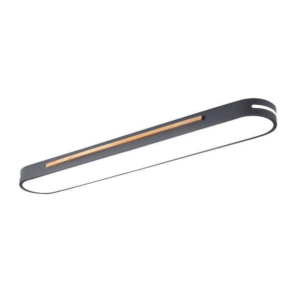 Scandinavian Minimalist Oval LED Flush Mount Light with Natural Wood Accent - Grey 110V-120V 37.5" White Light
