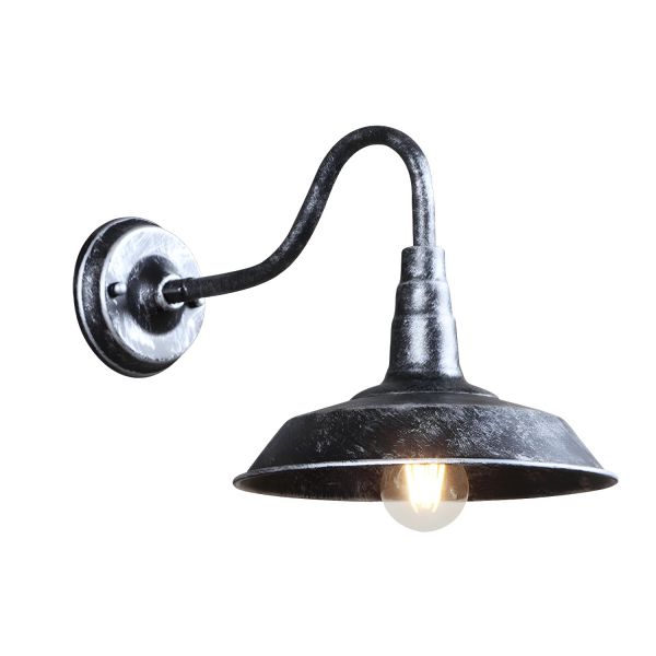 Rustic Farmhouse Gooseneck Barn Light Wall Sconce, Weather-Resistant Outdoor Metal Fixture for Porch - 110V-120V Silver