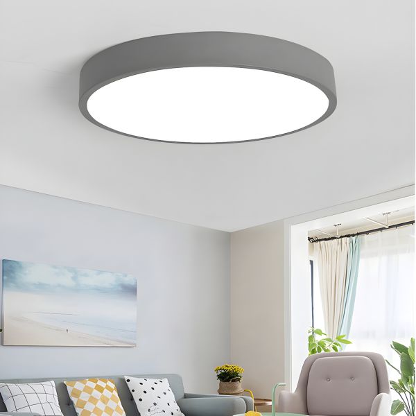 Modern Creative LED Macaron Ceiling Light Wrought Iron Circular Flush Mount with Acrylic Shade - Grey 110V-120V 12"