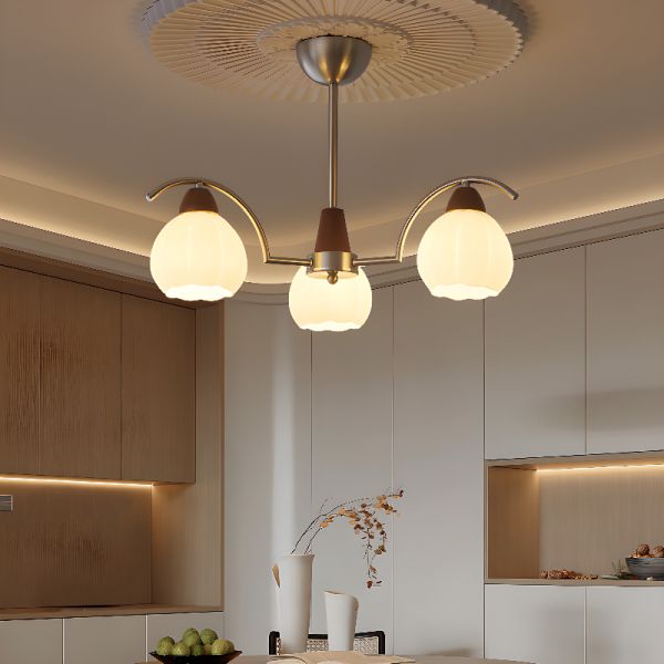 Mid-Century Walnut & Brushed Nickel Chandelier, Frosted Floral Glass Light for Dining Room - 3 110V-120V