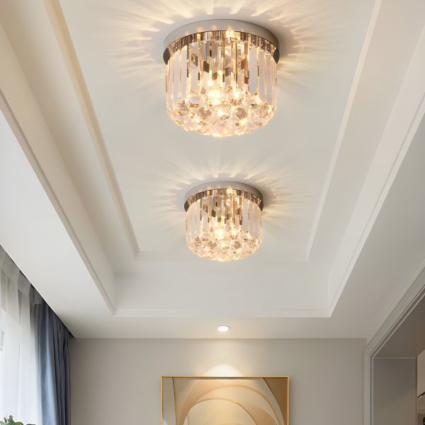 Geometry Shape Crystal Ceiling Light in Modern Luxury Style Stainless Steel Ceiling Lamp - Silver 110V-120V Round