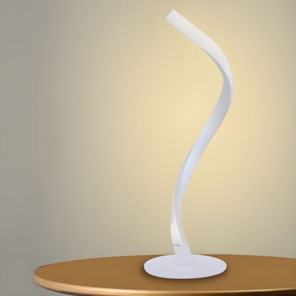 Contemporary Helix LED Table Lamp - Artistic Curved Aluminum Bedside Light for Bedroom & Living Room - 110V-120V White White Light