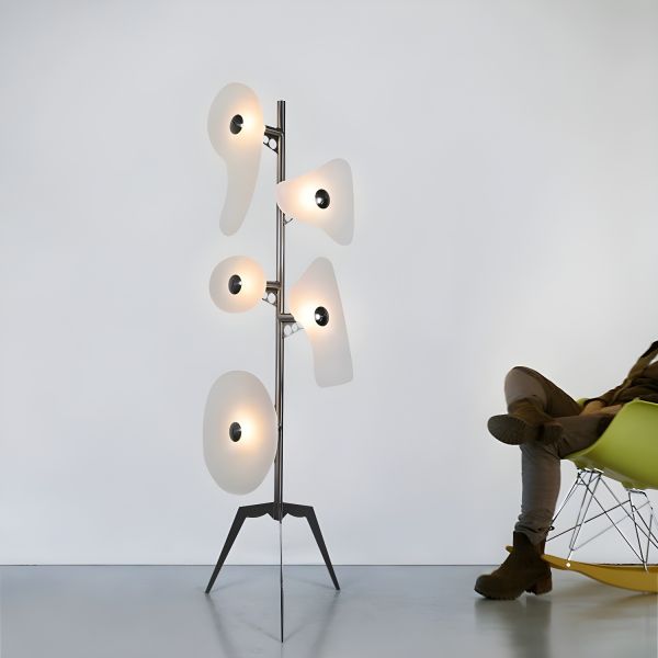 Postmodern Sculptural Floor Lamp with 5 Abstract Diffusers and Metal Tripod Base - White 110V-120V