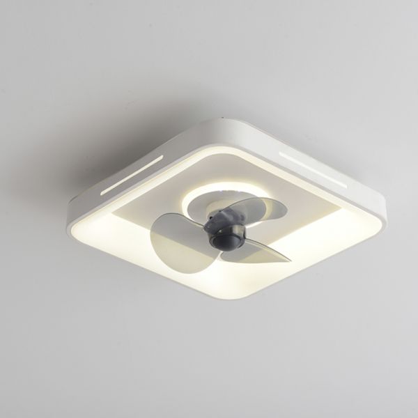 Contemporary Flush Mount Ceiling Fan with Light, Low Profile Dimmable LED Fandelier for Bedroom - 110V-120V White Square