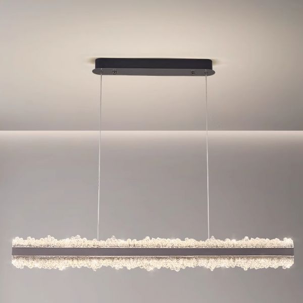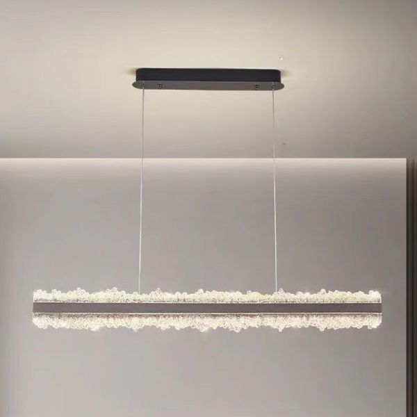 Glassy Hanging Island Pendant Light with Remote Control Stepless Dimming, Rectangle Fixture, String Mounting, LED Art Deco Style for Residential Use, Grey, 110V-120V, 39.5"