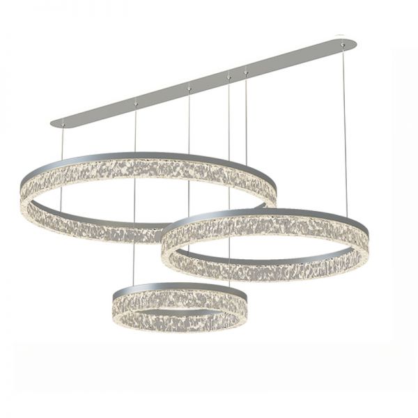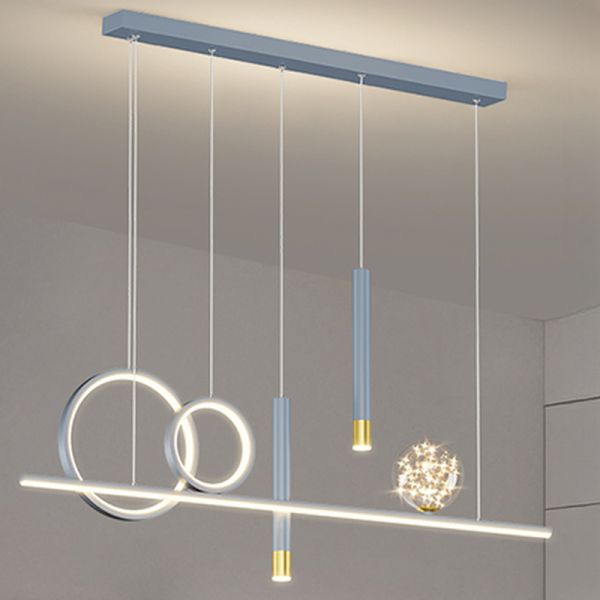 Glassy Hanging Island Pendant Light with Rectangle Fixture, 3 Color Light, String Mounting, LED Art Deco Style for Residential Use, Grey, 110V-120V, 40.5"