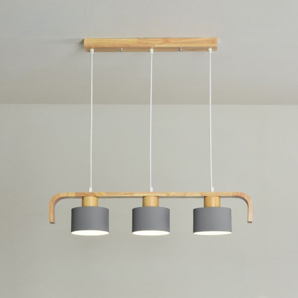 Scandinavian Linear Wood Island Light with Matte Metal Shades and Adjustable Cords - 3 Grey 110V-120V