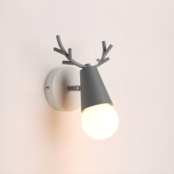 Nordic Antler Wall Sconce, Adjustable Metal Deer Head Light Fixture for Nursery Bedroom Hallway - 110V-120V Grey