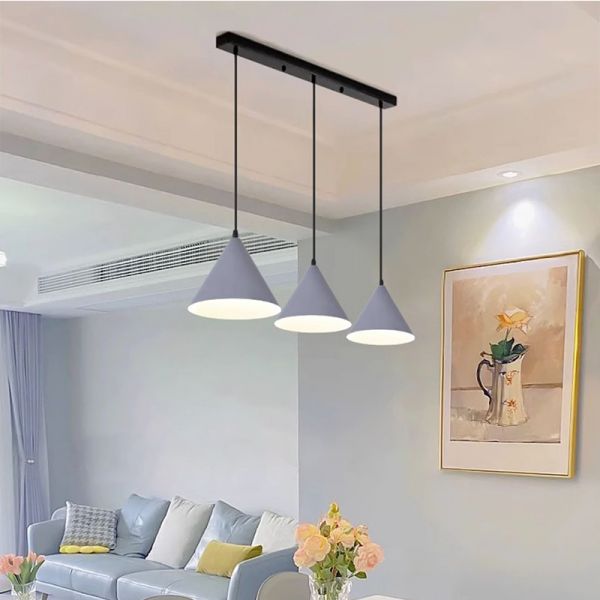 Minimalist 3-Light Linear Island Pendant, Matte Metal Cone Shade Fixture - 110V-120V Grey