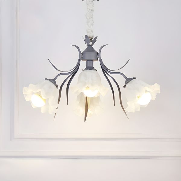 French Country Floral Chandelier with Frosted Lily Glass Shades - 110V-120V Grey 4