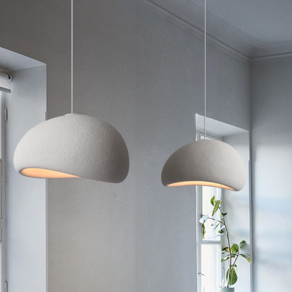 Wabi-Sabi Dome Pendant Light, Textured Faux Stone Finish for Natural Ambience - 110V-120V Gray 8"