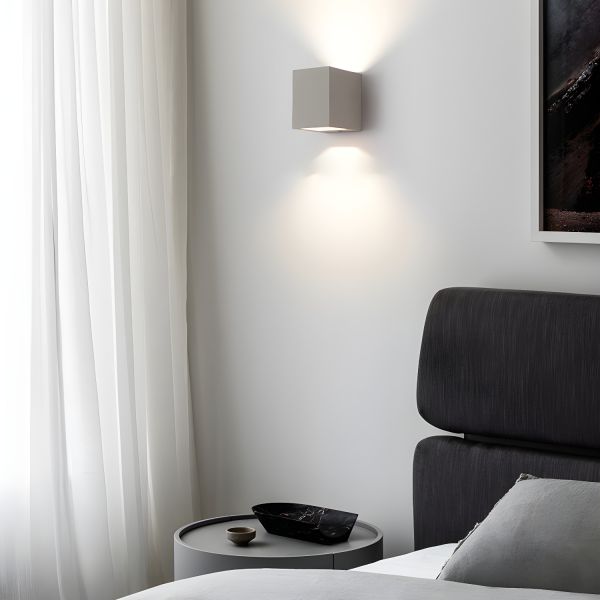 Industrial Concrete Wall Sconce, Geometric Cement Cube Up Down Light Fixture for Living Room Hallway - Grey 110V-120V