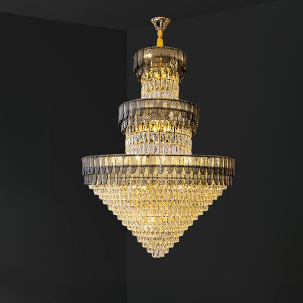 4 Lights, 3 Tiers Glassy Shade Chandelier Light with Adjustable Height, Grey, 110V-120V