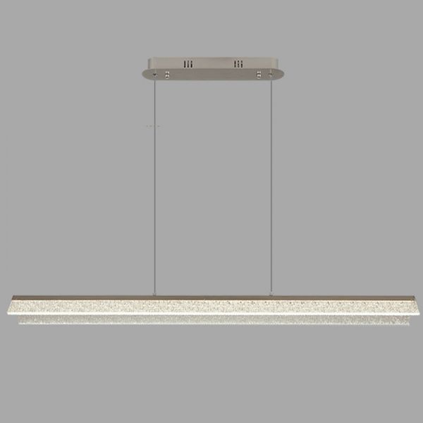 Contemporary Linear LED Island Pendant, Dimmable Hanging Light with Textured Water Glass Effect - Grey 110V-120V Third Gear (Warm/White/Neutral Light of Dimming) 39.5"