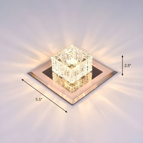 Modern Style Square Flush Light With Crystal Shade Corridor LED Flush Ceiling Light Fixture - Tan 110V-120V 5.5" Warm Light