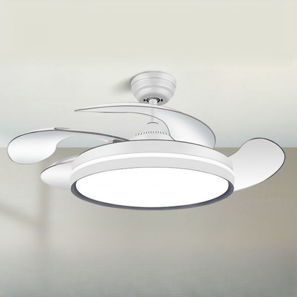 Smooth Dimming Control Retractable Blade Ceiling Fan with Light with ABS Plastic 3 Blades, Grey, 110V-120V, 42.5", Frequency Conversion Remote Control
