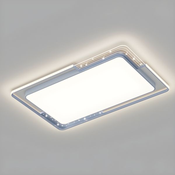 Contemporary LED Flush Mount Ceiling Light, Geometric Low Profile Fixture with Star Accents - Grey 110V-120V White Light Rectangle