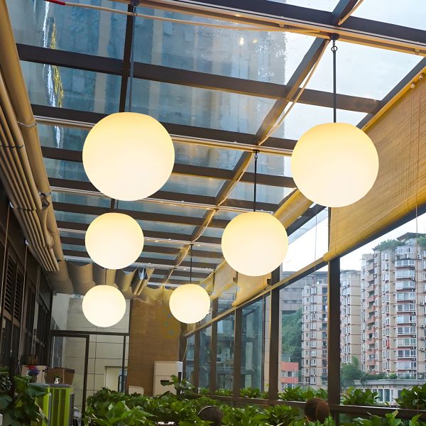White Acyclic Globe Pendant Light, MInimalist Style 1-Light Hanging Lamp - 110V-120V White 8"