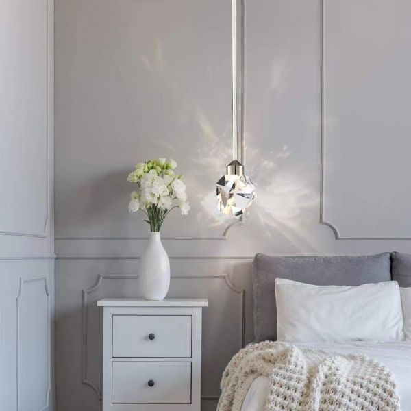 Classic Polygonal Pendant Light with Thread, Rechargeable and Silver Alloy Lampshade for Residential Use, 110V-120V