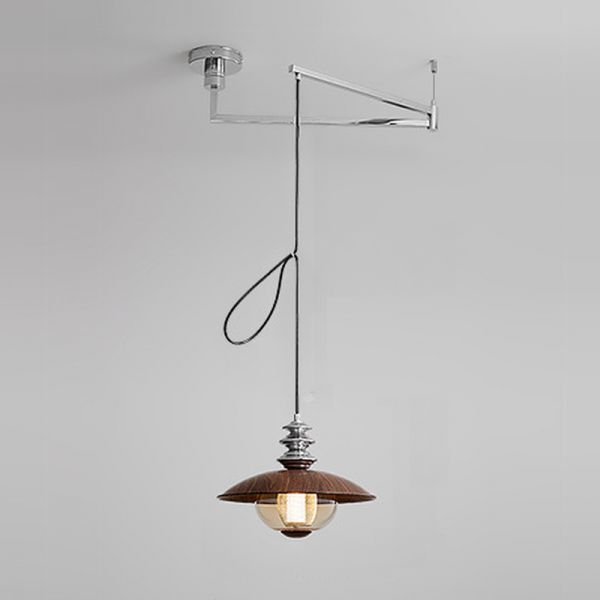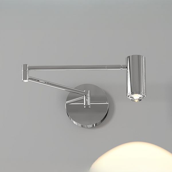 Swing Arm Silver Wall Sconce with Third Gear Transparent Downward Shade in Polymer, 110V-120V