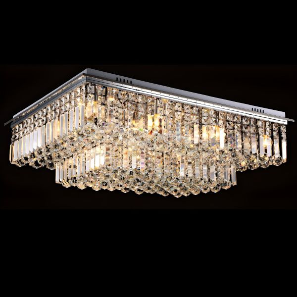 Contemporary Rectangular Crystal Flush Mount Chandelier, Chrome Ceiling Light Fixture - 110V-120V 24"