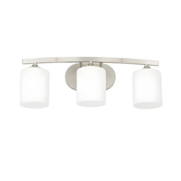 Transitional Brushed Nickel Vanity Light Fixture with Milky White Cylindrical Glass Shades - 110V-120V 3