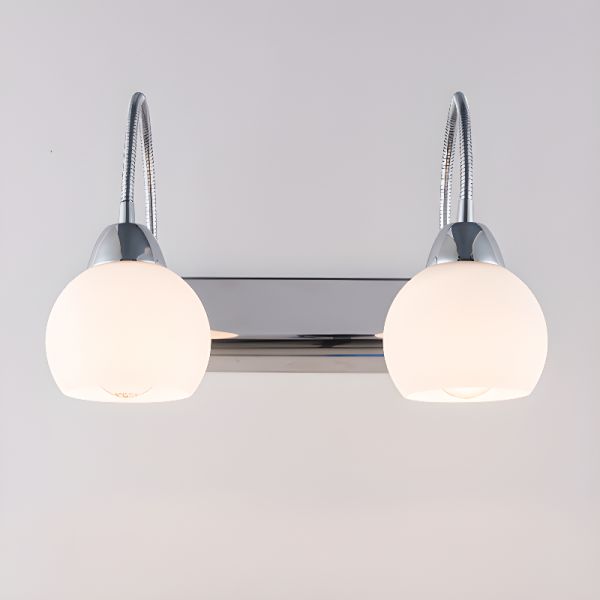 Sleek Chrome Mirror Front Light for Bathroom with Adjustable Gooseneck Arms and Frosted Glass Shades - 110V-120V Globe 2