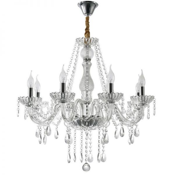 Elegant Crystal Candle Chandelier, Classic Glass Arm Pendant Light Fixture for Dining Room or Foyer - 110V-120V 8