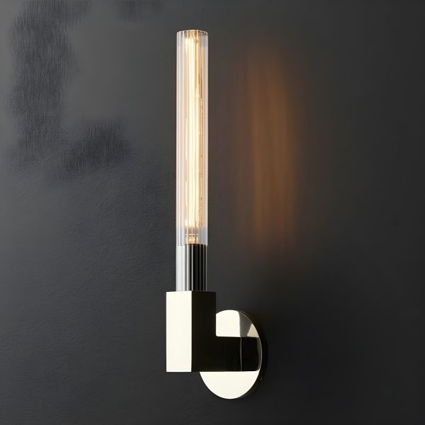 Mid-Century Fluted Glass Wall Sconce, Geometric Metal Vanity Light Fixture - 1 Chrome 110V-120V