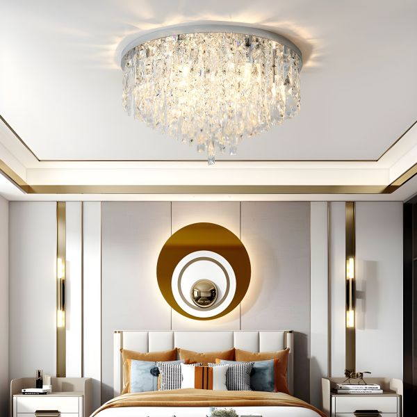 Contemporary K9 Crystal Flush Mount Light, Round Layered Chandelier Fixture for Bedroom Living Room - 110V-120V Chrome 16"