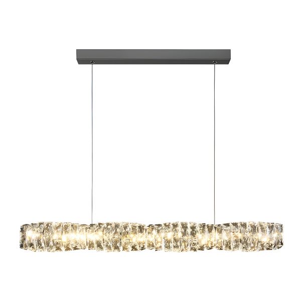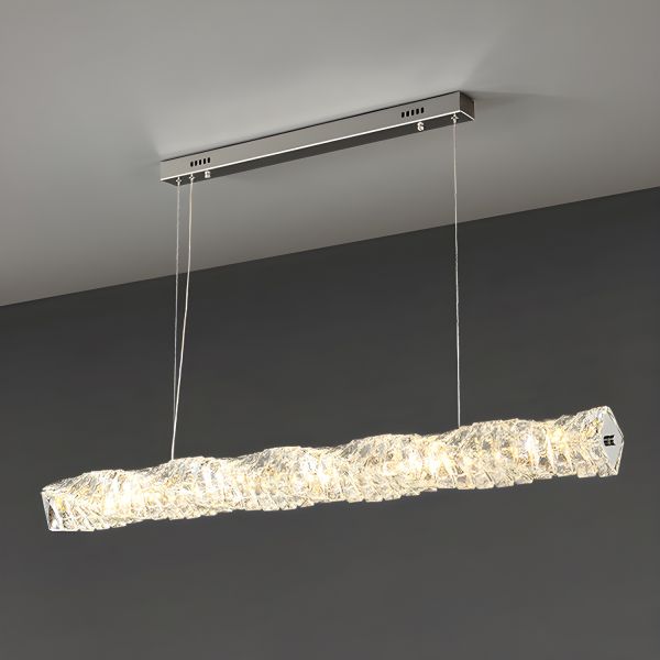 Contemporary Linear Crystal Island Chandelier, Textured Ice Glass Pendant Light for Dining Room - Chrome 31.5" 110V-120V