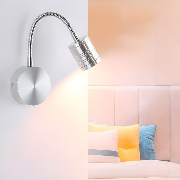 Minimalist Directional LED Wall Sconce, Flexible Aluminum Gooseneck Reading Light for Bedside - 110V-120V Silver White Light