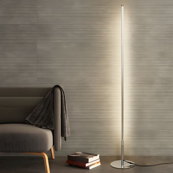 Minimalist LED Corner Floor Lamp, Linear Metal Standing Light with Weighted Base and Foot Switch - 110V-120V Silver White Light