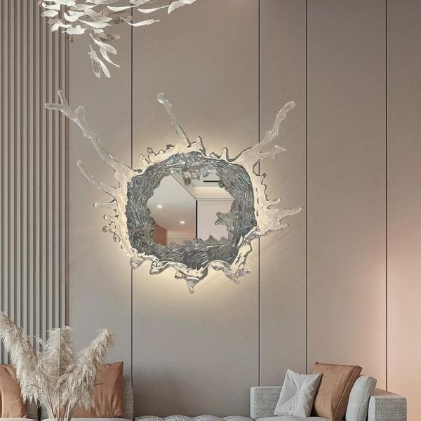 Sculptural Liquid Resin LED Wall Sconce with Mirror, Artistic Water Splash Vanity Light - 110V-120V Silver 18"