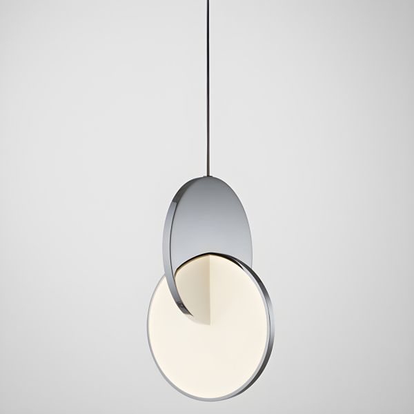 Contemporary Geometric LED Pendant Light, Intersecting Disc Fixture for Dining Room Kitchen - 110V-120V Chrome 11"