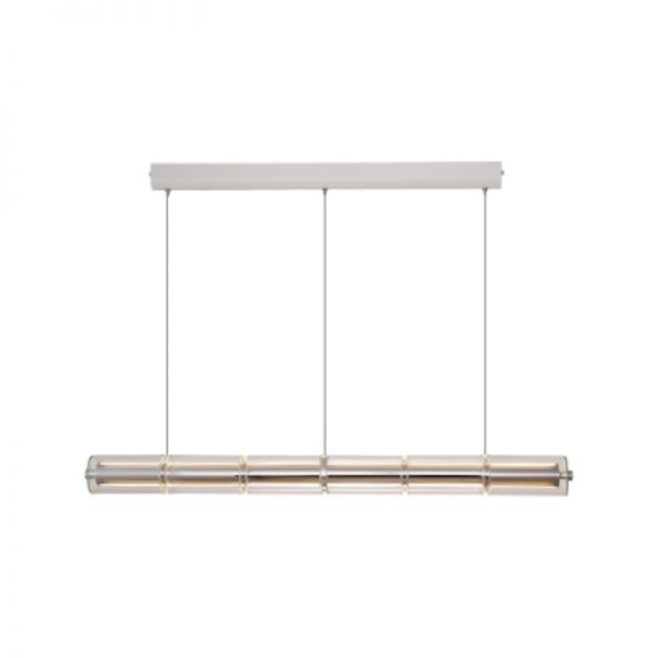 Tube Shade Cylinder Fixture with 2 Lights, Transparent Hanging Light Over Kitchen Table, 110V-120V, 49"